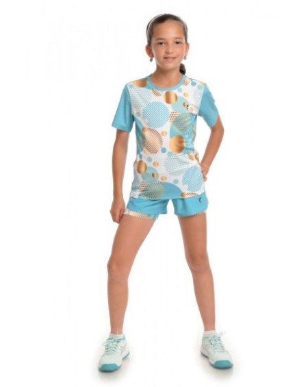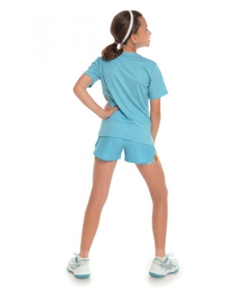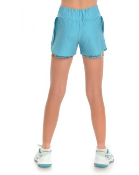 Pantalonii scurti dublati Dubai sunt realizati special pentru sportivii care doresc sa faca performanta. Printul digital este realizat cu vopsea OEKO-TEX, ecologica, testata. Materialul folosit este produs in Italia si are multiple proprietati. Colantul este compact, netransparent, rezistent, cu o senzatie placuta la atingere. Asigura suport muscular adecvat in timpul exercitiului si ofera protectie UV. Material: 85% poliester reciclat din sticle de plastic, 15% elastan. Partea superioara este realizata din poliester rezistent, nu se scamoseaza, este respirabil si este tratat pentru a oferi protectie UV. Asigura compresie musculara corecta si isi mentine proprietatile în timp. Material: 83% poliester, 17% elastan. Intructiuni de ingrijire: se spala la masina la 40 de grade C, nu se foloseste inalbitor, nu se foloseste balsam, se calca daca este nevoie, de preferat sa se spele pe dos. Culoare: Turcoaz